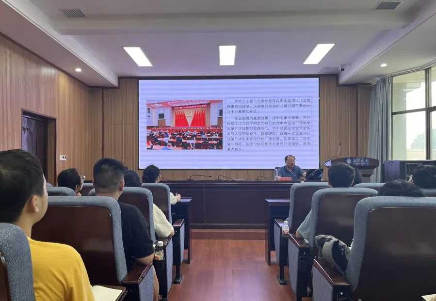 国家革命文物协同研究中心湘潭大学主任、中国旅游研究院红色旅游研究基地首席专家刘建平同志以党的二十届三中全会为切入点,系统讲授了全面深化改革的总体要求、重要举措和根本保证,并指出入党积极分子应该深入学习贯彻党的二十届三中全会精神,坚定不移沿着习总书记指引的改革方向不断前进。
