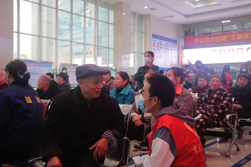 20日上午,志愿者们来到医院,随即开始了紧张有序的准备工作。九点钟,志愿者和工作人员帮助本次活动的主角——住院老人们走出病房。在门诊大厅,志愿者和老人们话家常、唠旧事,老人们也拉开了话匣子,把自己这一生的见闻和经验分享给可爱的青年志愿者们。在这温馨的气氛中,本次志愿活动正式开始。