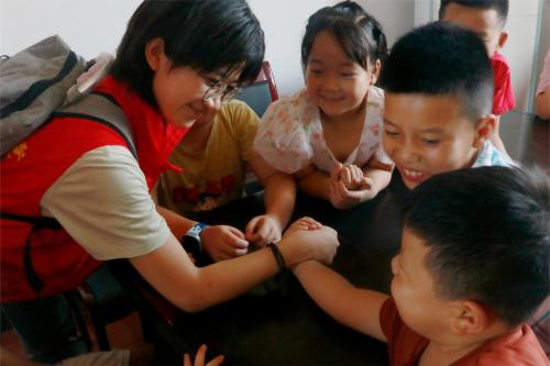 课间时分,实践团成员与小朋友们掰手腕儿、下象棋、玩滑梯、传篮球,教室里充满了欢声笑语,让每个小朋友都能感受到快乐与归属感。由此志愿者和小朋友们建立了亲密融洽的双向关系,在欢笑中增进了彼此的了解。