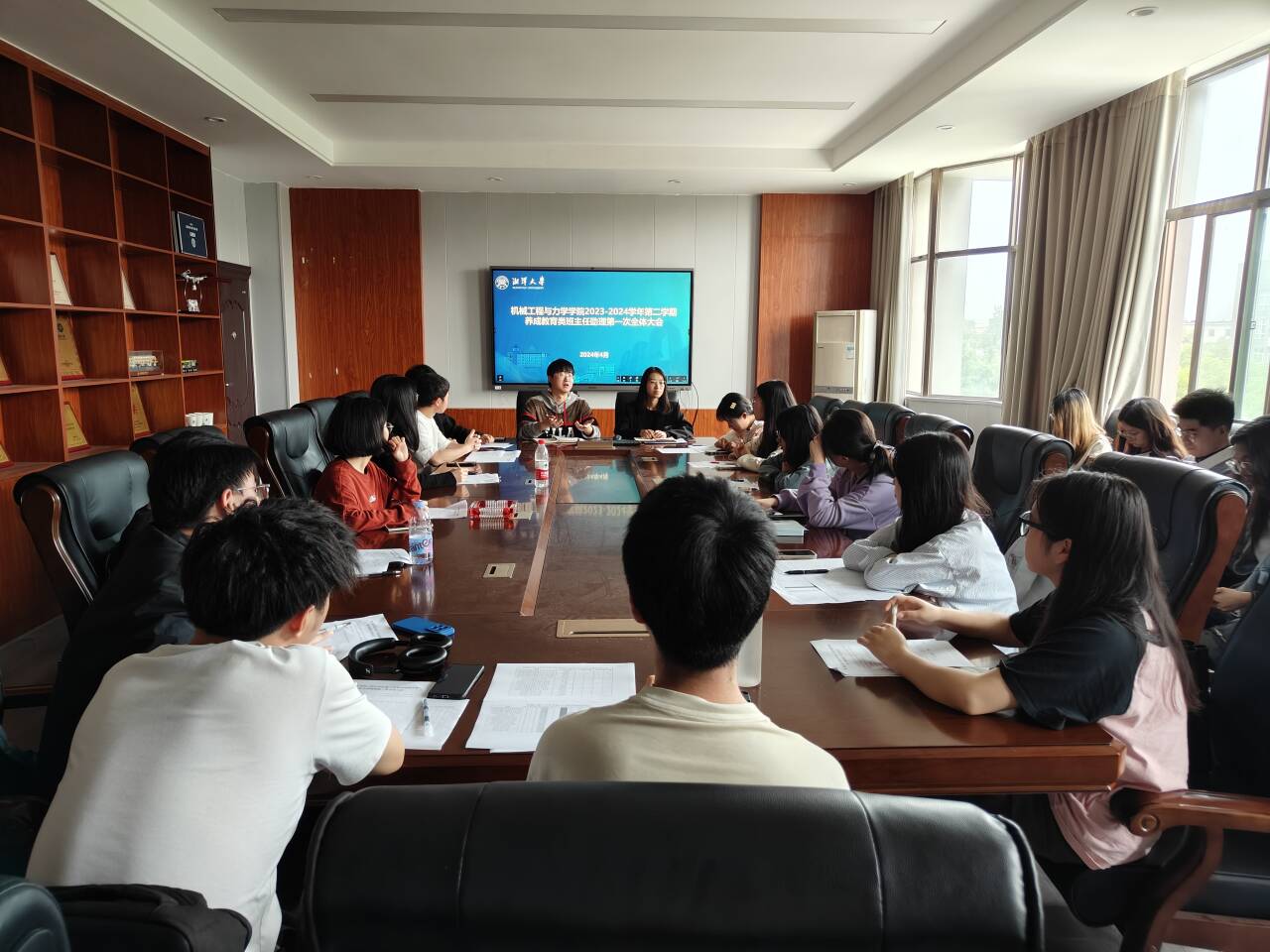 为全面增强2023级养成教育类班主任助理工作实效,全方位落实新生培养管理工作,spbo比分网-spbo体球网足球比分 于4月18日中午在机械楼312室召开了本学期养成教育类班主任助理第一次全体会议。spbo比分网 专职辅导员曹译文老师、闫锦老师以及全体2023级养成教育类班主任助理参与此次会议。