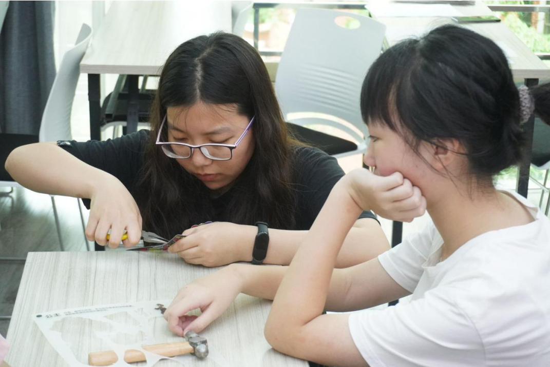 “古老非遗,快乐传承”这是传承人吴渊老师在传承过程中一直坚守的理念。为了让孩子们感受到纸影非遗文化带来的乐趣,实践团展示了一些当代深受小朋友喜爱的动画形象的纸影胶片,如奥特曼、变形金刚、王者荣耀、葫芦娃等。实践环节中,将模块化的纸影胶片发给孩子们,在实践团成员的帮助下,孩子们自己动手制作影偶。实践团鼓励孩子们为自己的纸影取一个名字,想一句台词,编一个故事,将童真的独一无二赋予纸影艺术。