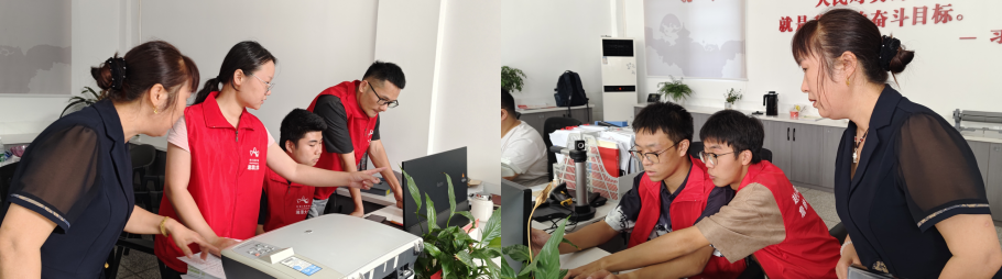 (图为实践团帮助吴荣香主任录入留守儿童信息)