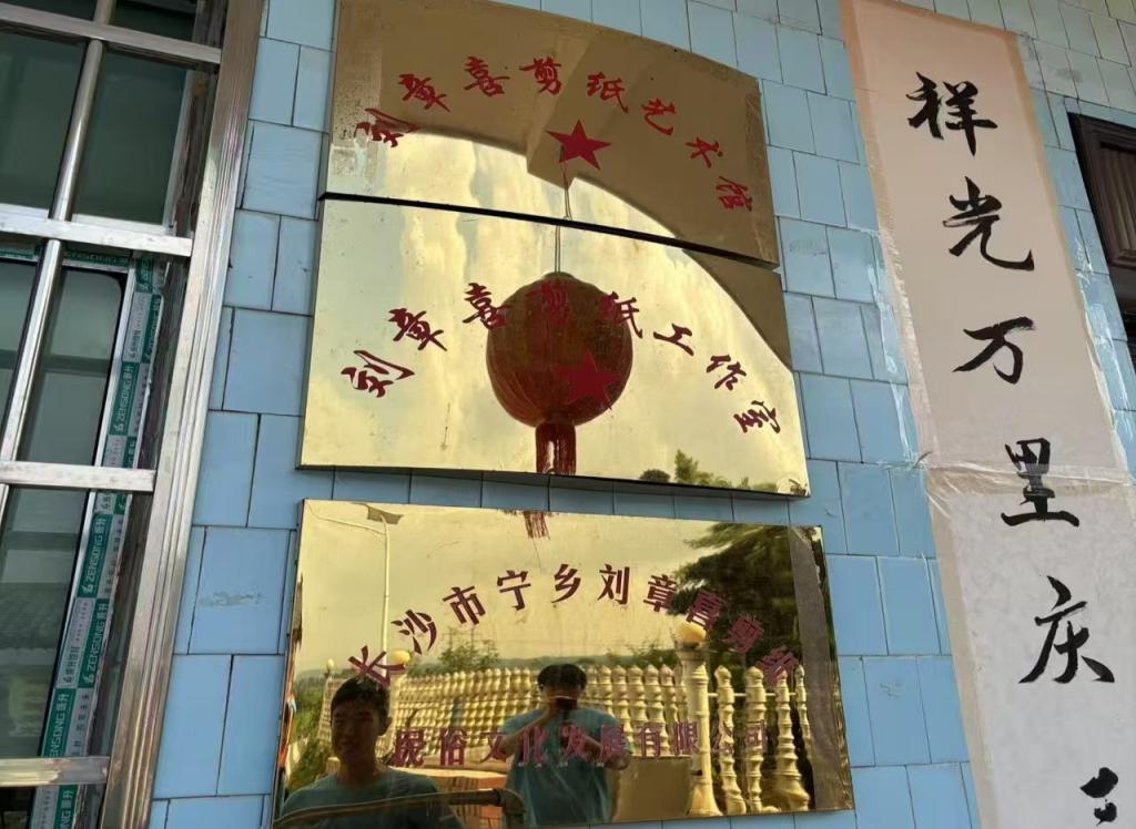 仲夏的沩水河波光潋滟,两岸青砖黛瓦的民居间,飘散着草木蒸腾的湿润气息。这片孕育了唐代"剪彩贴屏风"技艺的土地,此刻正被沙沙的裁纸声唤醒记忆。7月14日下午2时,乡韵寻踪队-spbo比分网 赴宁乡市大成桥镇社会实践团推开省级传承人刘章喜工作室的木格门,七旬老人手中的红纸如蝶翻飞,剪刀尖跳跃的金光里,流淌着宁乡剪纸1300年的光阴故事。