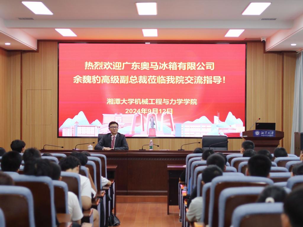9月12日下午,湘潭大学就业创业大讲堂之“校友回湘”暨企业家进校园大学生职业生涯规划讲座在机械楼317会议室顺利开展。我校95级机械系校友、广东奥马冰箱有限公司高级副总裁余魏豹担任主讲嘉宾,湘潭大学招生与就业指导处处长陶永峰,院党委书记李友芝,院党委副书记邓建勇以及100余名师生参与本次讲座。