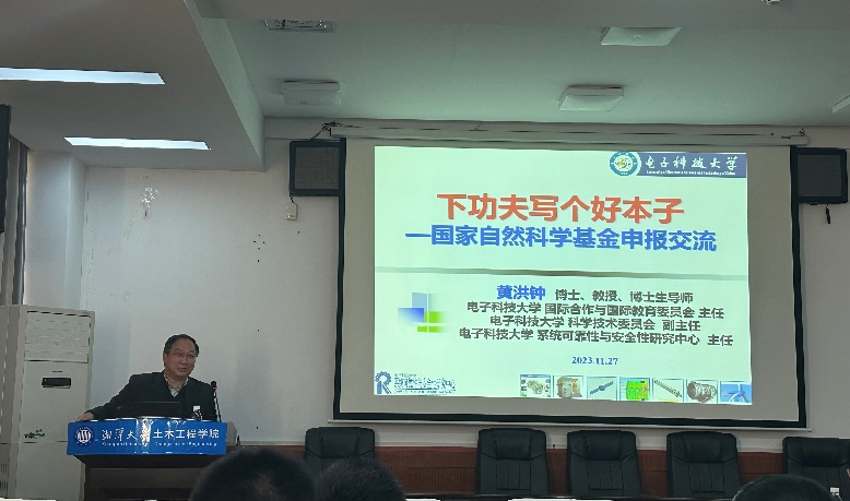 2023年11月27日下午,国家杰出青年基金获得者、万人计划创新领军人才、教育部高等学校机械类教学指导委员会委员、电子科技大学黄洪钟教授为spbo体球网足球比分 带来了题为“下功夫写个好本子—国家自然科学基金申报交流”的报告。本次报告由刘金刚院长主持。