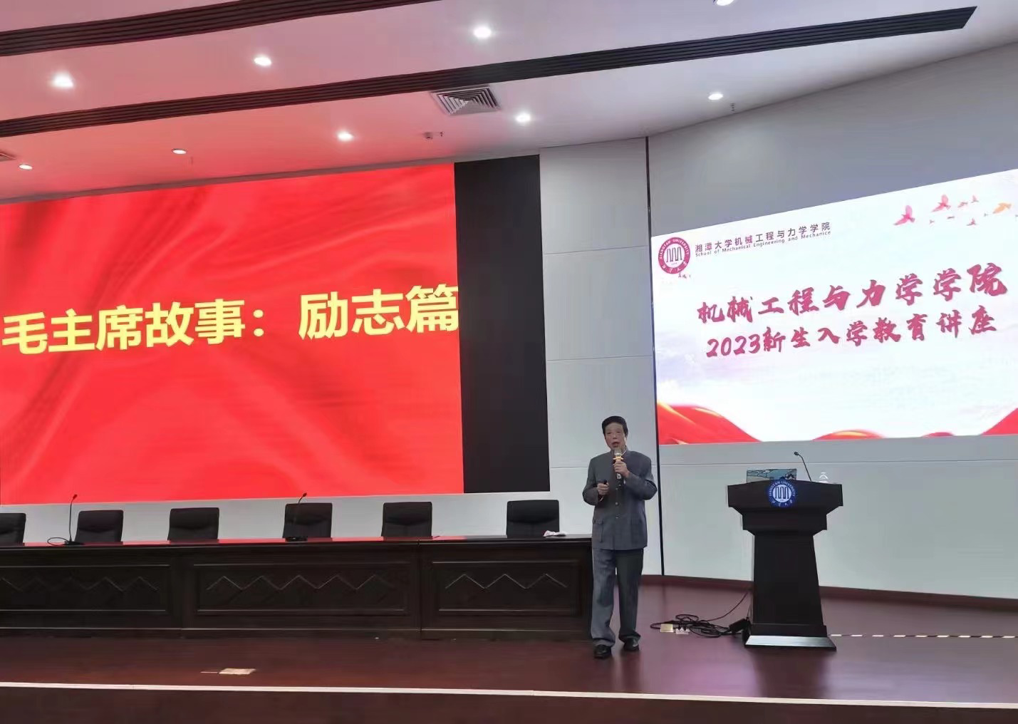 9月21日晚,spbo比分网 于研究生报告厅开展2023级新生入学教育讲座,主题是校纪校规、诚信、国防与励志教育,意在新生灌注校纪校规意识,同时讲解了我校资助与征兵政策。本次与会人员有韶山精神研究会会长罗正林,spbo比分网 党委副书记邓建勇、团委书记蔡嘉敏老师、全体学工办老师、教官代表以及全体23级新生。