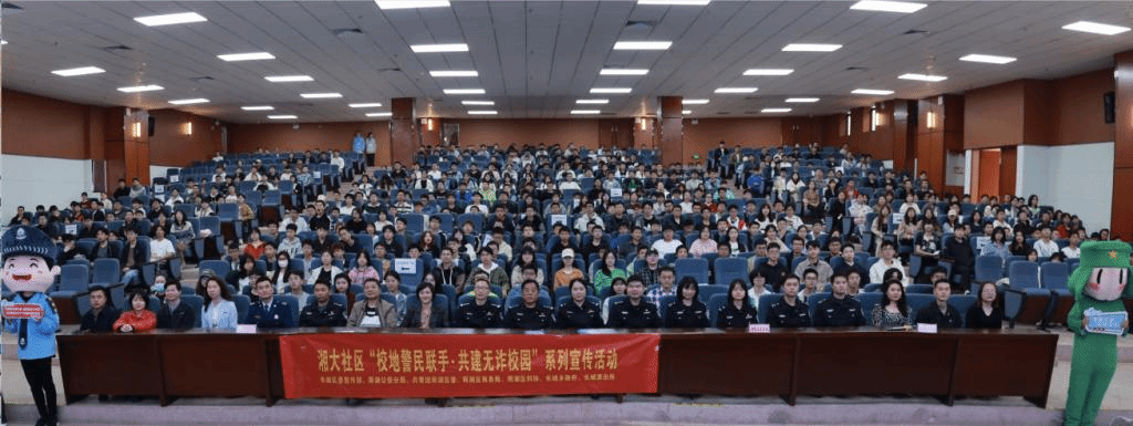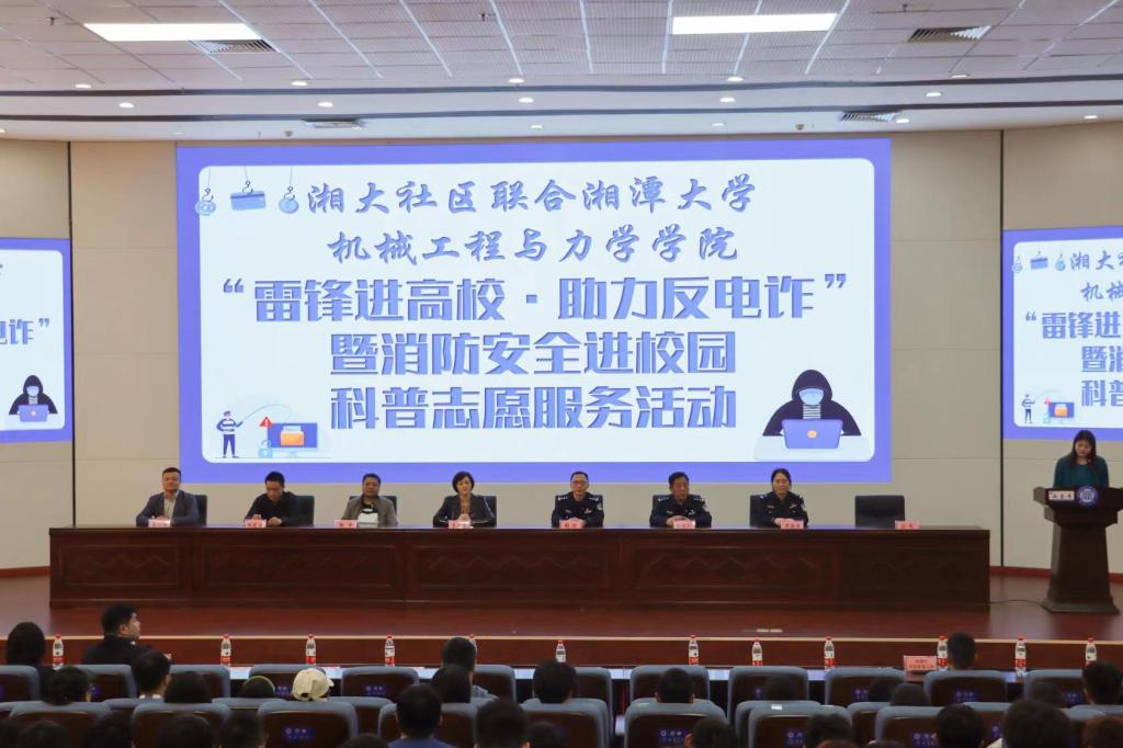 3月14日下午,spbo比分网-spbo体球网足球比分 联合湘潭市公安局、湘大社区在研究生院报告厅开展“校园雷锋之助力反电诈·消防知识宣传”志愿服务活动。湘潭市公安局、长城乡政府、雨湖区消防大队等相关领导莅临现场指导,湘潭市各县区公安干警、机力院七百余名师生代表参与本次活动。
