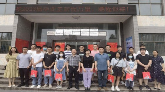最后,三位院领导为与会毕业生代表发放毕业礼物并在机械楼前合影留念,本次毕业生座谈会圆满结束。