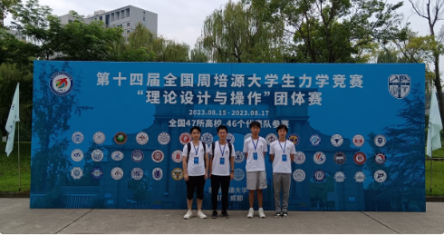 随后,我校组织廖文彬、骆文杰、罗鸿翔、唐栋四位同学,于2023年8月15日至17日,参加了在西南交通大学举办的《理论设计与操作》团体赛,经过参赛同学与指导教师的努力,荣获第十四届周培源大学生力学竞赛团体赛优胜奖。