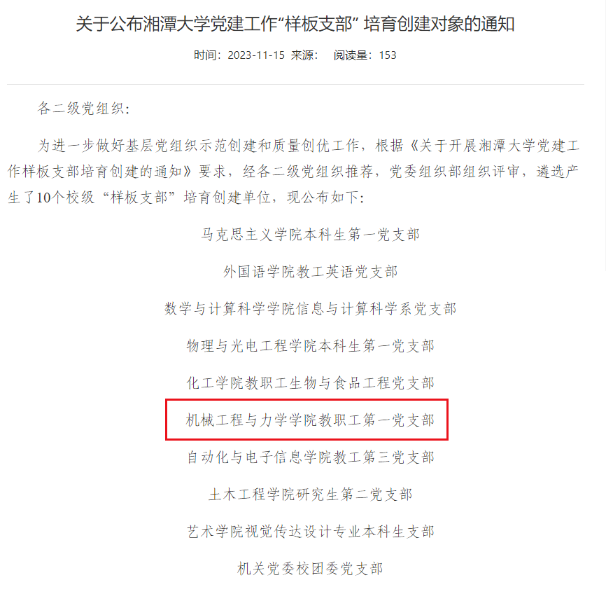 喜报!spbo体球网足球比分 教职工第一党支部获批湘潭大学党建工作“样板支部”培育创建单位