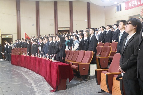 随后,由学工办祝老师宣读校团委文件,院团委第一副书记姚奕汀带领同学们庄严宣誓。