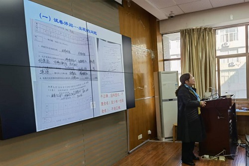 spbo比分网 督导组组长谢桂兰教授指出开展教学督导工作,是强化教育教学管理,加强教学质量监控,提高教师教学水平的有效方法和途径。谢老师从学校对教学督导工作的要求出发,结合在教学督导过程中出现的问题,对如何上好每一堂课、如何出好每一份试卷、以及如何批阅好每一份试卷等问题进行了详细的讲解。