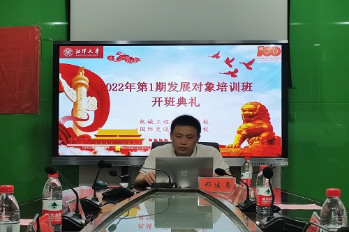2022年5月7日上午,湘潭大学机械工程spbo比分网 ·国际交流spbo比分网 分党校2022年第1期发展对象培训班开班典礼于机械楼313会议室以线上形式顺利举行。莅临本次活动的嘉宾有:湘潭大学机械工程spbo比分网 党委副书记邓建勇同志,组织人事员、分党校班主任尹艳辉同志,湘潭大学国际交流spbo比分网 专职组织员贺昕同志,团委书记贺逸君同志,机械工程spbo比分网 本科生党支部书记祝爱民同志。