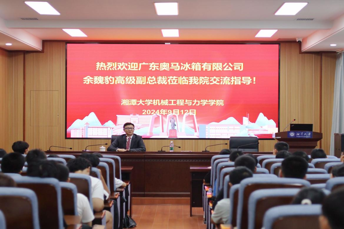 9月12日下午,湘潭大学就业创业大讲堂之“校友回湘”暨企业家进校园大学生职业生涯规划讲座在机械楼317会议室顺利开展。我校95级机械系校友、广东奥马冰箱有限公司高级副总裁余魏豹担任主讲嘉宾,湘潭大学招生与就业指导处处长陶永峰,院党委书记李友芝,院党委副书记邓建勇以及100余名师生参与本次讲座。