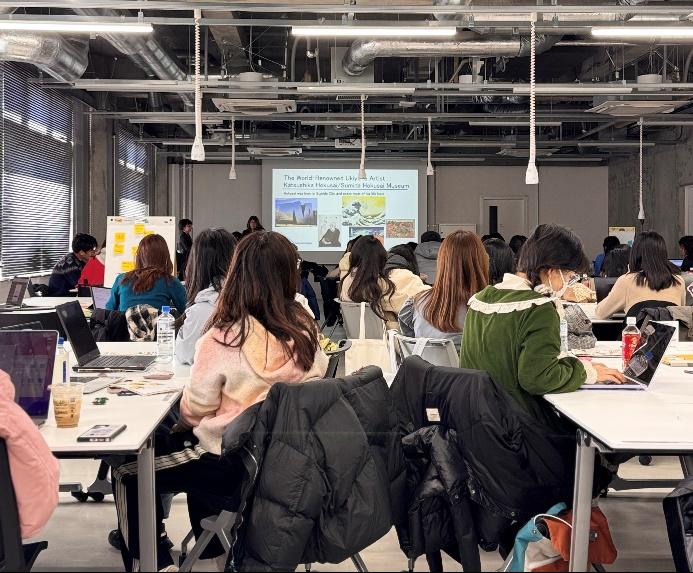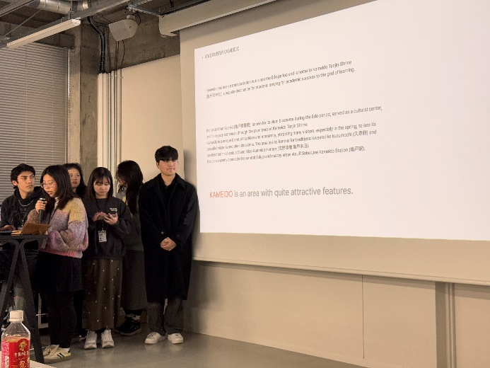 设计聚焦墨田区东京天空树、两国相扑文化中心等文化地标,各团队展开深度田野调查。通过实地体验、游客行为观察及文化动线分析,成员们系统采集了景区运营数据,使用用户旅程分析等方法,在传统体验、工艺作坊交互等场景中提炼出文化体验升级路径,为构建创新解决方案奠定基础。体验结束后,工作坊邀请东京墨田市旅游协会会长森山郁子女士分享了专题讲座。为参与者详细讲解了墨田区的历史与文化背景,系统解析了该区“传统工艺+都市旅游”的发展现状与挑战。各小组根据之前的调研成果,开始对区域文化、游客需求以及旅游体验进行分析,并在此基础上进行设计构思。