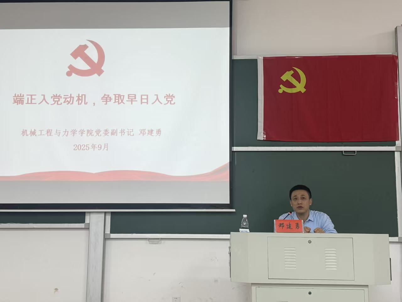 开班典礼上,spbo比分网 党委副书记邓建勇发表讲话并授课,他指出入党积极分子要主动接受党组织的考验,加强党的理论知识学习,做到以学笃行,成为一名信念坚定、知行合一的新时代大学生。同时,他以“端正入党动机,争取早日入党”为题进行授课,引导学员将个人理想融入党的宗旨与民族复兴伟大事业。