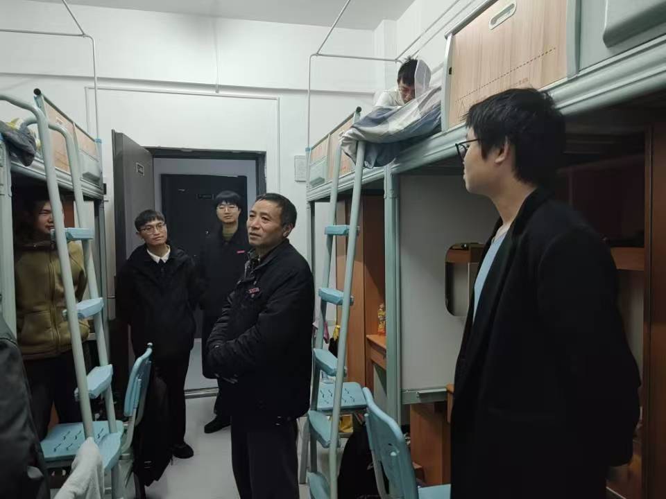 为进一步加强师生间交流,关爱学生成长,使广大新生尽快适应大学生活,12月5日晚,spbo比分网 关工委副主任杨湘军老师,学工办专职辅导员曹译文老师、郑维老师共同走访2024级新生宿舍。