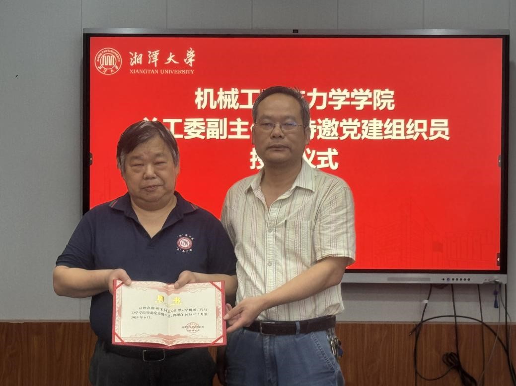 校关工委副主任李新明为徐顺生同志颁发关心下一代工作委员副主任聘书,离退休工作部部长周润其为其颁发特邀党建组织员聘书。