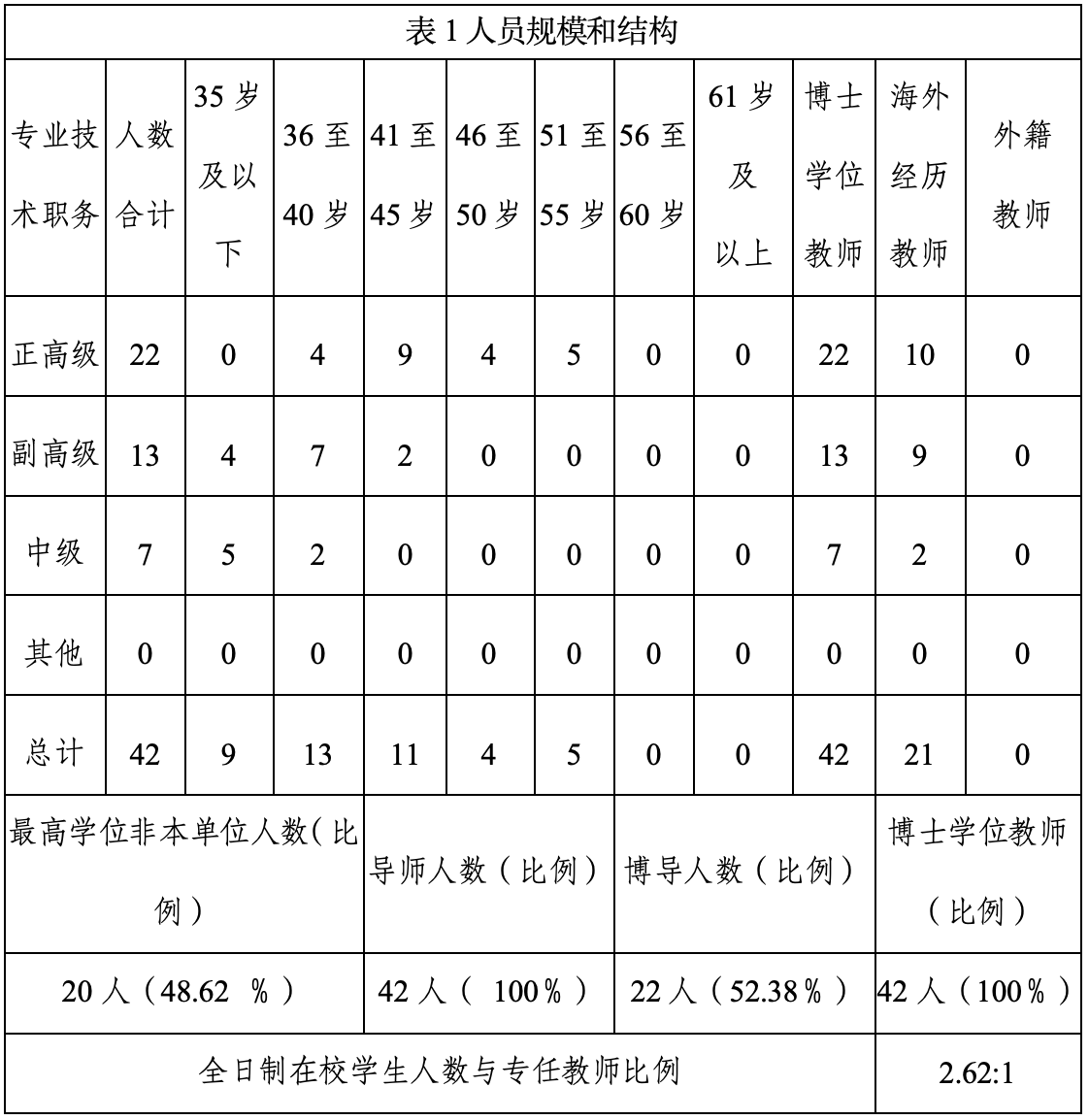 表1.校内研究生导师人员规模和结构