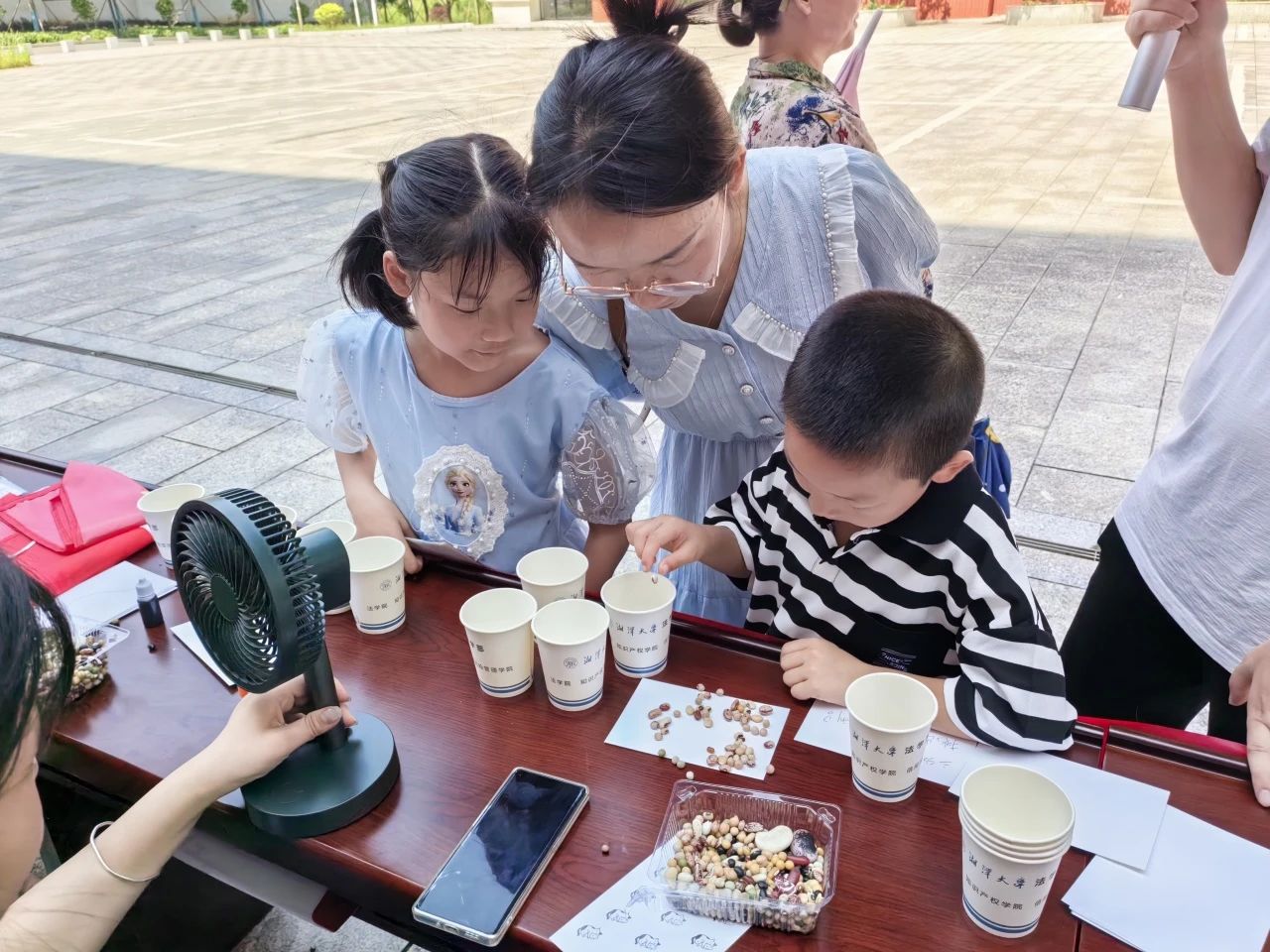 法学学部负责的分豆子大赛紧张刺激,规定时间内要将不同种类的豆子分开挑出来才算挑战成功。参与者们全神贯注,争分夺秒地分拣着豆子,短短 3 分钟见证了他们的专注与努力。