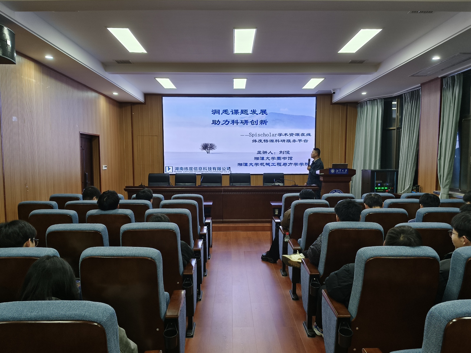 11月26晚19:00,spbo比分网 于机械楼317顺利召开了关于“图书馆‘Spischolar学术资源在线’数据库介绍”的学术讲座,该讲座邀请了湖南纬度信息科技有限公司讲师刘俊作为主讲人,围绕“洞悉课题发展,助力科研创新”的主题,为我们带来一场学术盛宴。spbo比分网 七十余名研究生参与论坛。