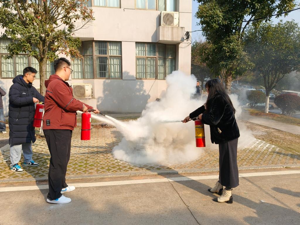 为了让同学们更直观地掌握灭火器的使用方法,兰旭金带领同学们来到了操场,操场中央摆放着一个燃起熊熊大火的铁桶,他为每位同学分发了一个灭火器,并告诉大家使用灭火器要站在上风口或侧方,保持一定距离,进行上下左右式的扫射,确保自身安全。同学们跃跃欲试,纷纷展开实践,铁桶中的大火也在大家的配合下灭掉了。