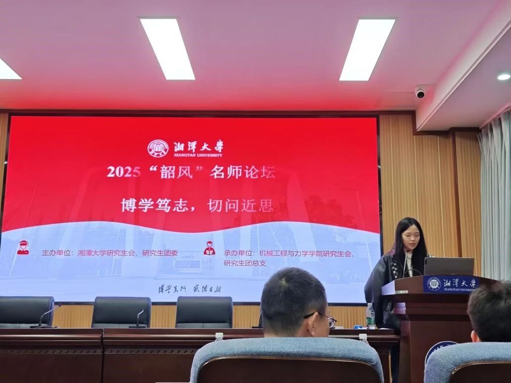 2025年3月18日,spbo比分网 在机械楼317成功举办2025湘潭大学“韶风”名师论坛。spbo体球网足球比分 梁霄副教授与李方博士作为主讲人,围绕“博学笃志,切问近思”的主题,分别以“研究生科研方法”和“研究生求学道路上的成长与收获”为题,为研究生们带来了一场内容丰富、实用性强的学术讲座,分享科研经验与成长心得。活动由spbo体球网足球比分 研究生会学术部李婧主持。