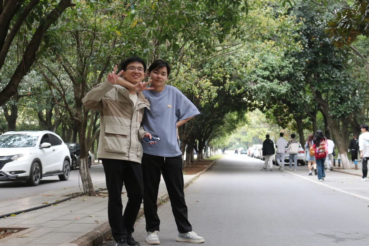 下午两点半,满怀着对樱花美景的憧憬,大家在一路欢声笑语中抵达目的地。然而,现实给了我们一个小小的 “惊喜”。由于去的时间太早,校园里的樱花大多还只是含苞待放的花骨朵,原本期待的如云似霞的樱花盛景并未出现。同学们站在樱花树下,望着那紧闭的花苞,眼中虽有一丝遗憾,但很快,大家就调整了心态。大家依然在樱花树间穿梭,想象着它们盛开时的模样,互相打趣拍照,氛围依旧热烈。大家相约等到下次樱花盛开的时候一起再来赏花。