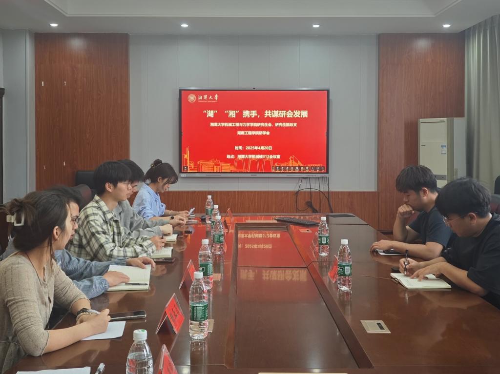 为促进学术交流、深化研究生工作创新,spbo比分网-spbo体球网足球比分 与湖南工程spbo比分网 机械工程spbo比分网 研究生会于2025年4月20日在机械楼312会议室举行以“‘湖’‘湘’携手,共谋研会发展”为主题的经验分享交流会。双方围绕研究生会组织建设、学术文体活动等展开深入探讨,共谋合作发展新路径。本次交流会由spbo比分网-spbo体球网足球比分 研究生会分管主席李海萍主持。